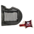 The high flow cotton gauze air filter is washable, reusable and built to last for the life of a motorcycle engine. K&N air filters consist of four to six sheets of cotton gauze layered between two sheets of aluminum wire mesh. This media is then pleated and oiled to enhance its filtering capabilities and overall performance. K&N Air Filters were created for an environment requiring maximum horsepower and enhanced acceleration in addition to protection from the dirt and dust. The result is an air filter that allows dramatically more air into an engine, is washable and reusable, and will protect your engine for the life of your ride.